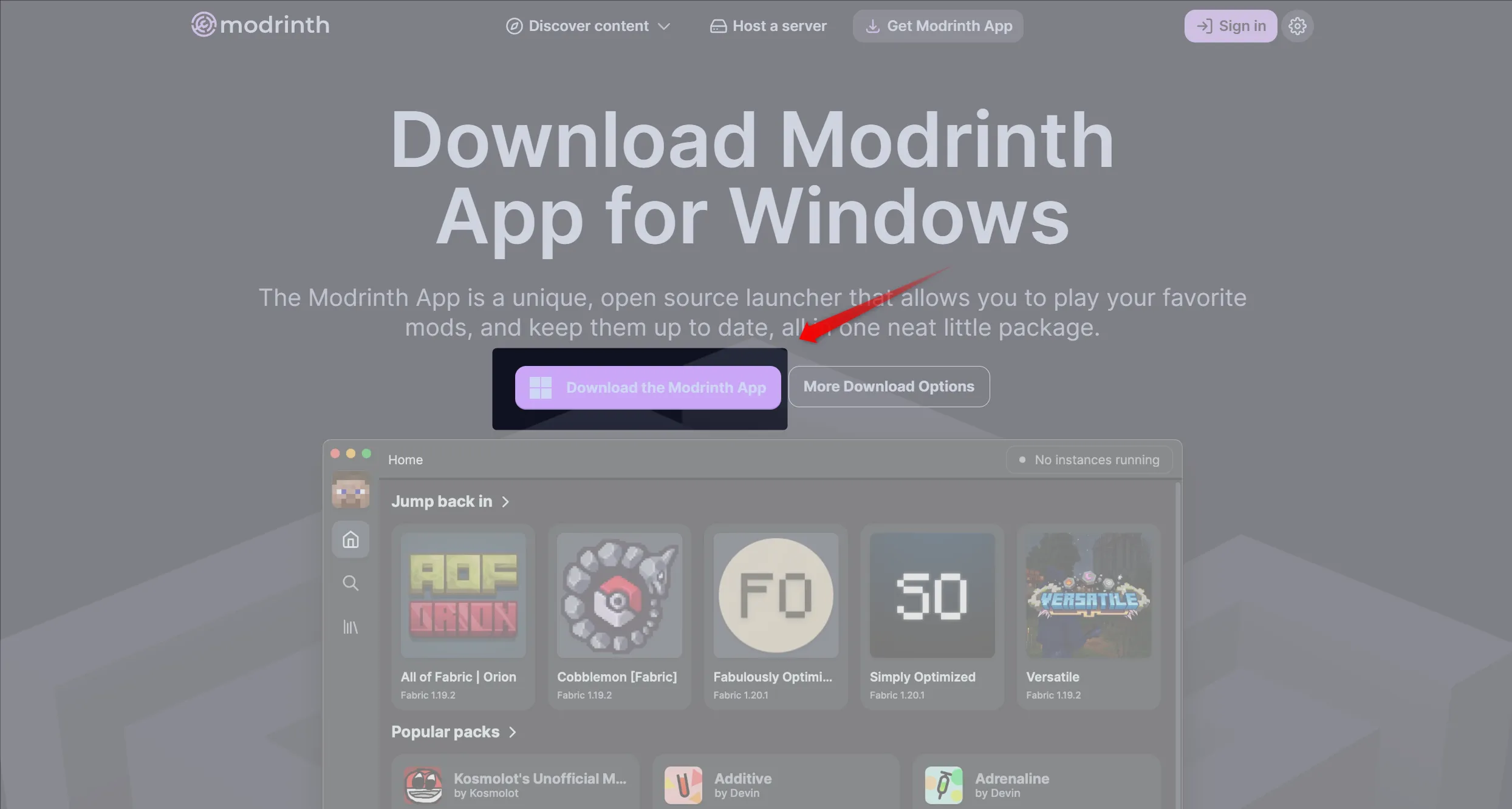 Download the Modrinth Appをクリックしてダウンロードします。