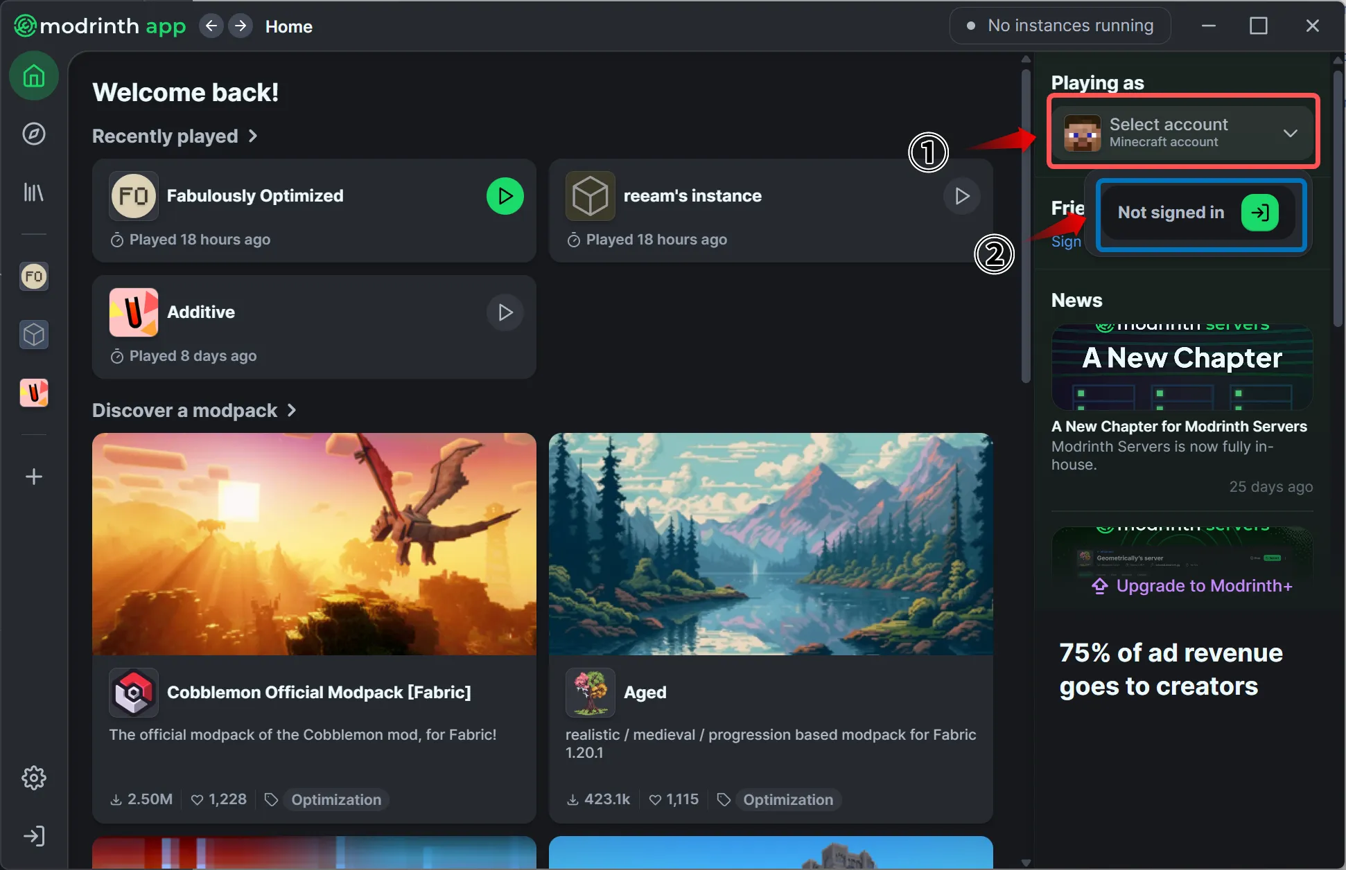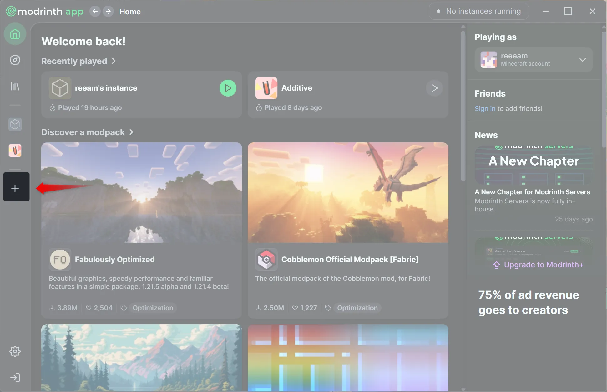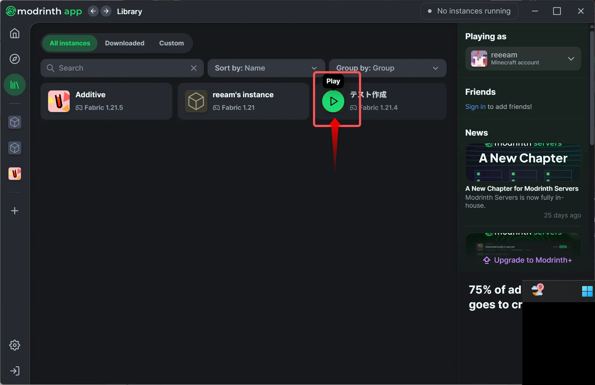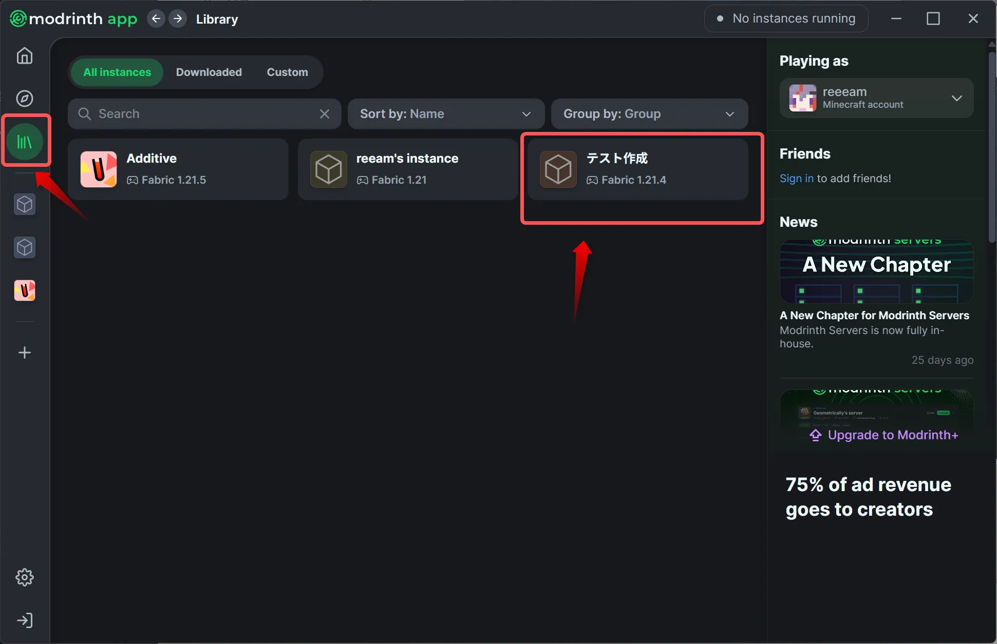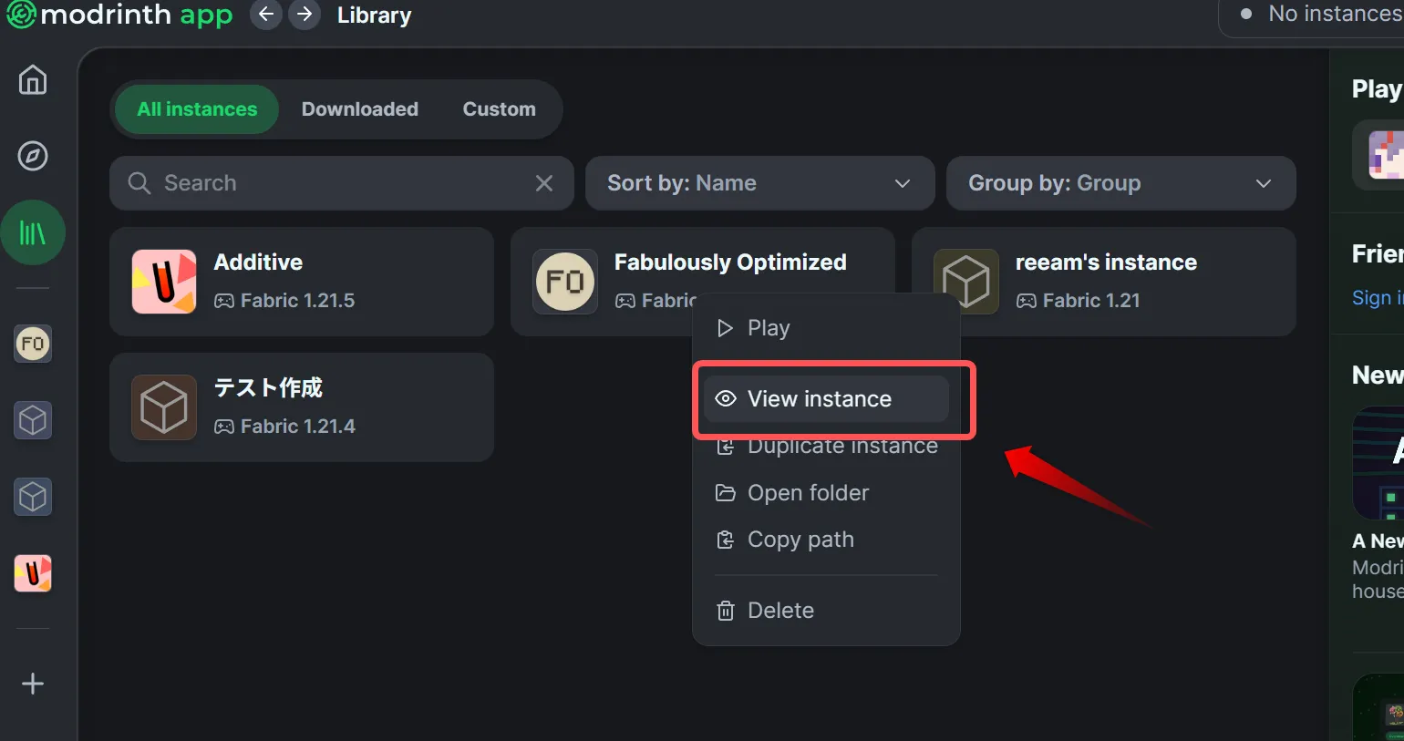 今回はモダンなUIで使いやすい「Modrinth App」という外部ランチャーを使ってみましょう。