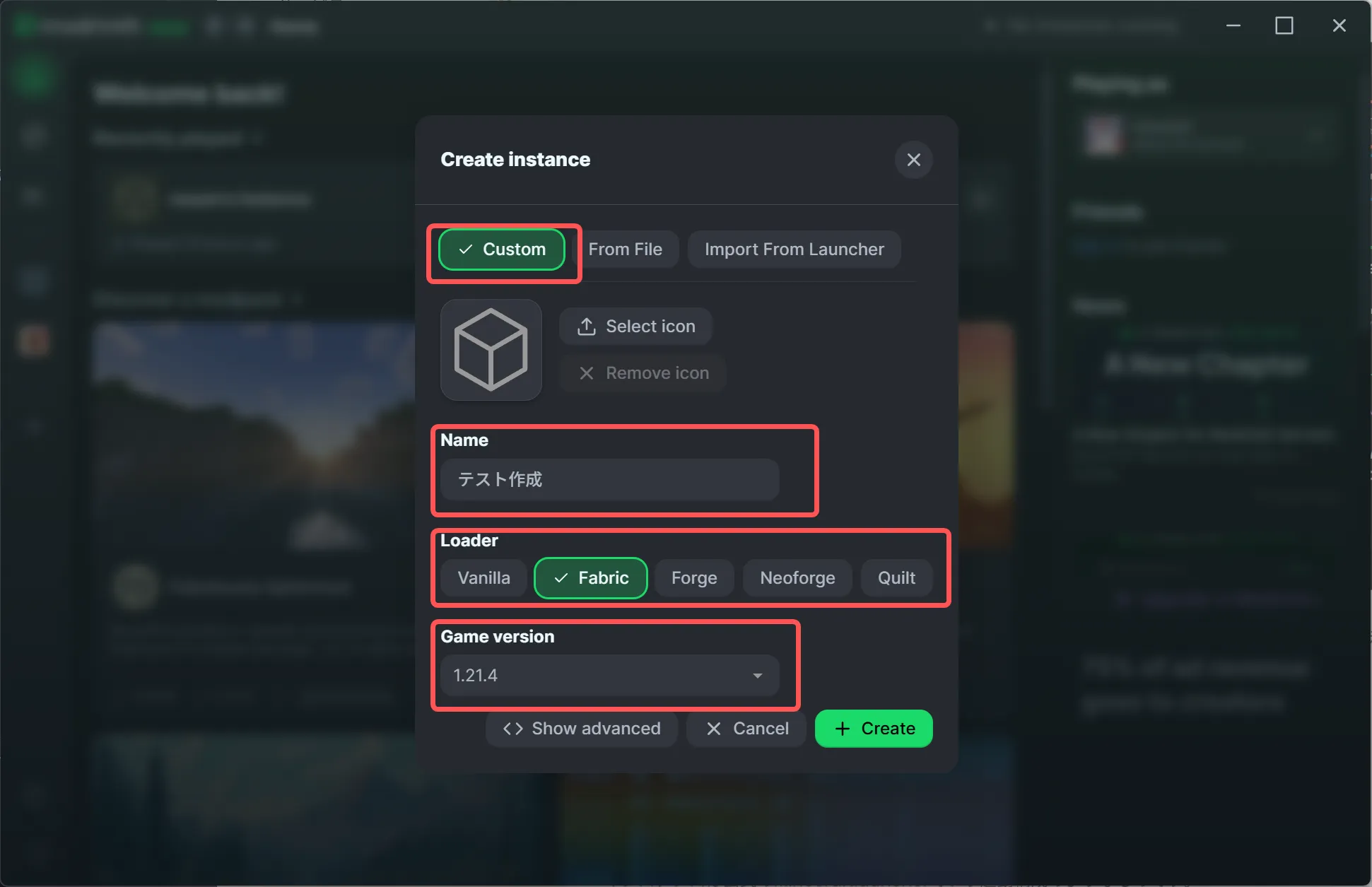 インスタンスは公式ランチャーでいう起動構成のようなものです。
