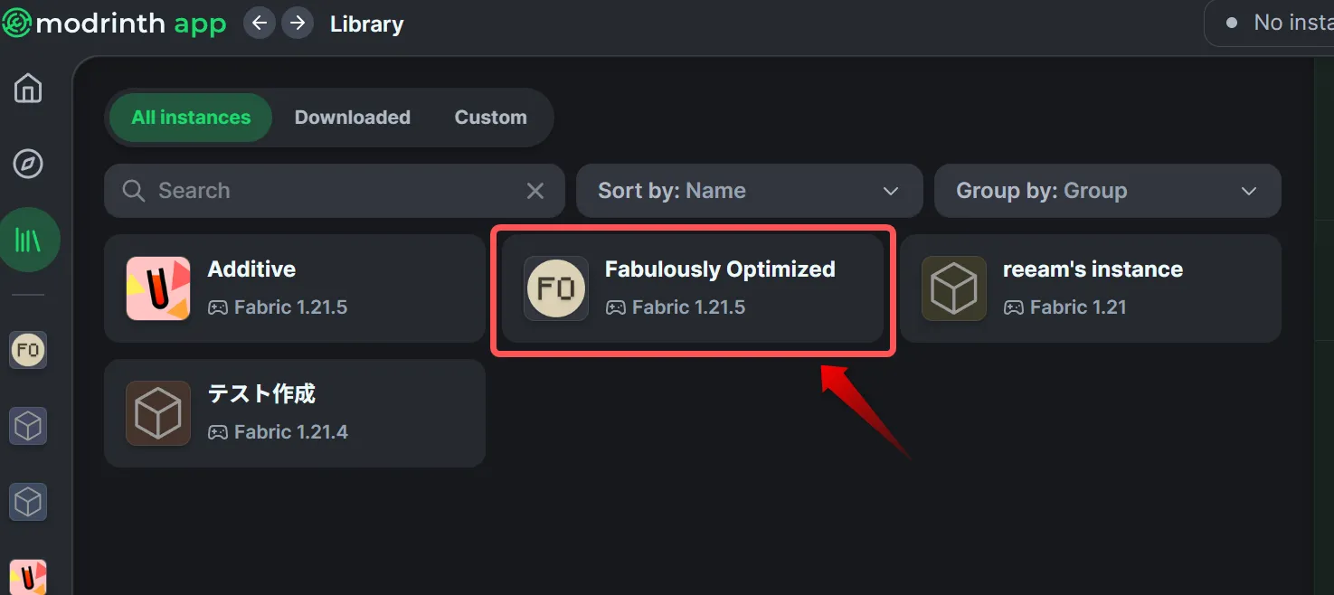 するとFabulously Optimizedがインスタンスとして表示されています!