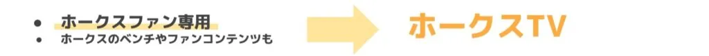 ホークスTVはベースボールLIVEのコンテンツ(パリーグ見放題)に加え、ホークスファン向けのオリジナル番組やファーム(2~4軍)の試合、特番やキャンプ映像も見放題になるサービスです。